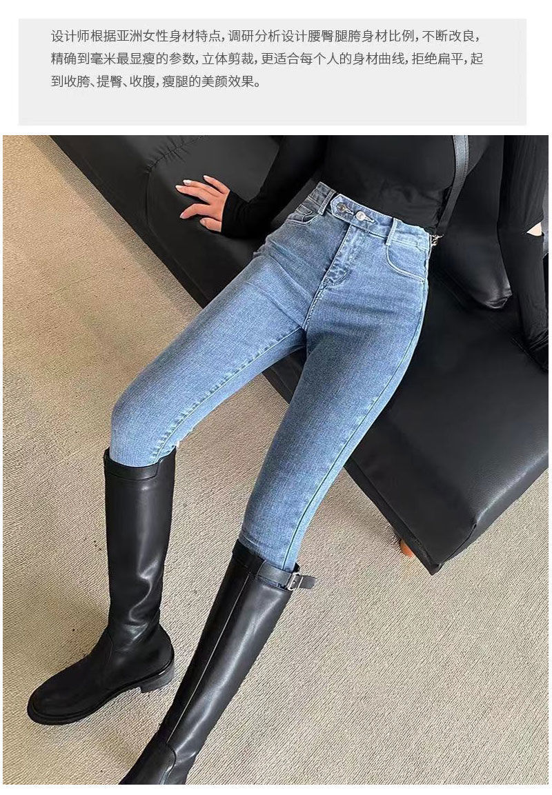 ベーシックなハイウエストデザインのデニムパンツで、使いやすさと美脚効果を兼ね備えています。