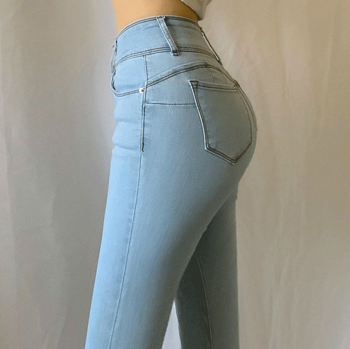 すっきりとした美しいシルエットが魅力のレディース ジーンズです。