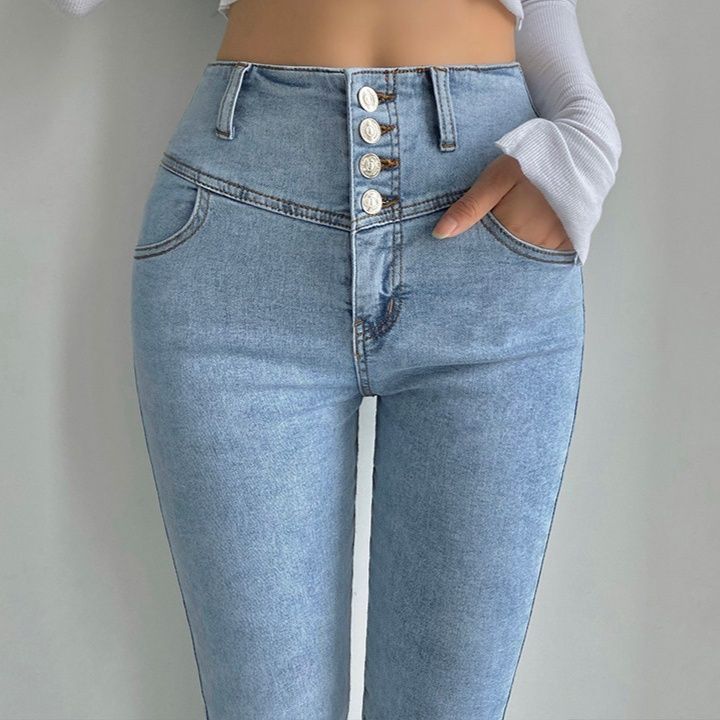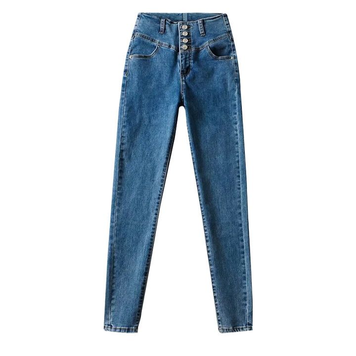 ハイウエストデザインが脚長効果を演出するレディース ジーンズです。