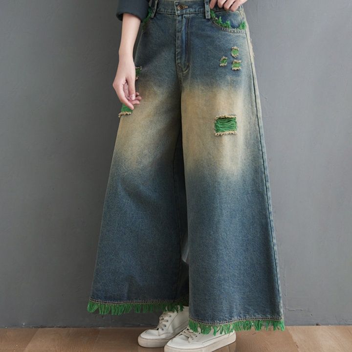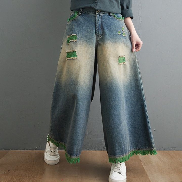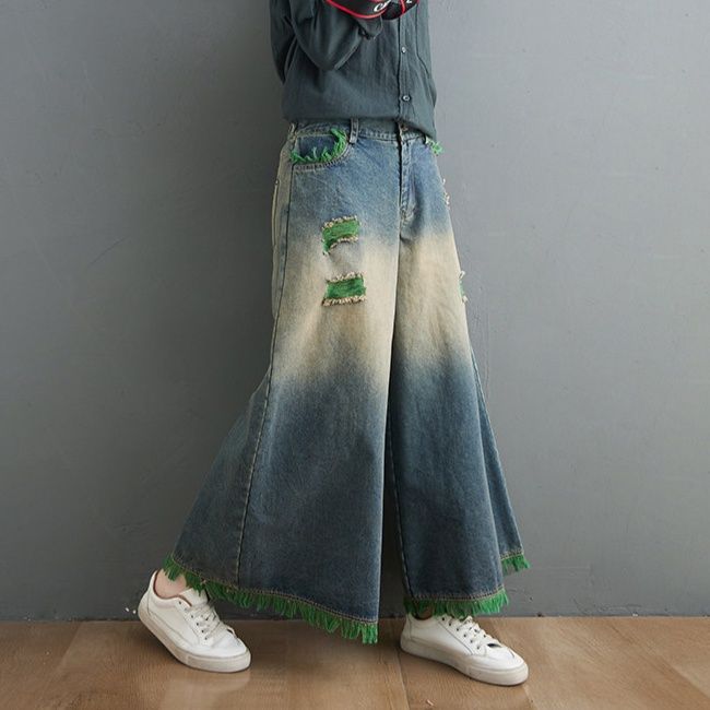 個性的なグラデーション加工が目を引くレディース ジーンズのガウチョです。