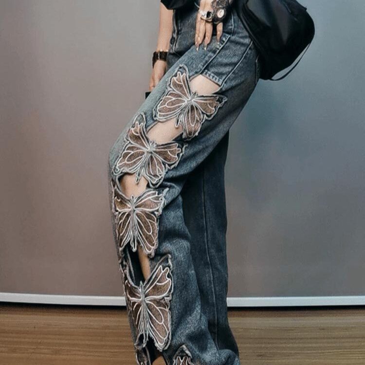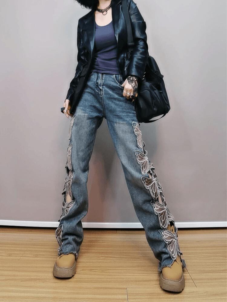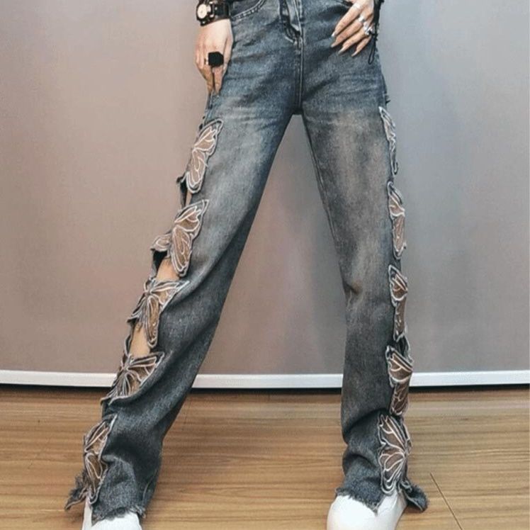 両サイドに施された華やかな刺繍デザインが印象的なレディース ジーンズです。 ワイドシルエットで体型カバーしながらもトレンド感のある着こなしが叶います。 裾に向かってストンと落ちる美しいラインが脚長効果を発揮し、スタイルアップも期待できます。 刺繍部分はリボンで結ばれた立体的なデザインで個性を演出。 カジュアルからモードまで幅広いコーディネートに対応する一本です。