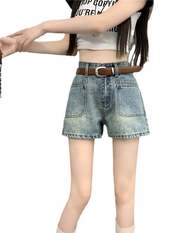 ハイウエストデザインで脚長効果が期待できるレディース ジーンズのショートパンツです。